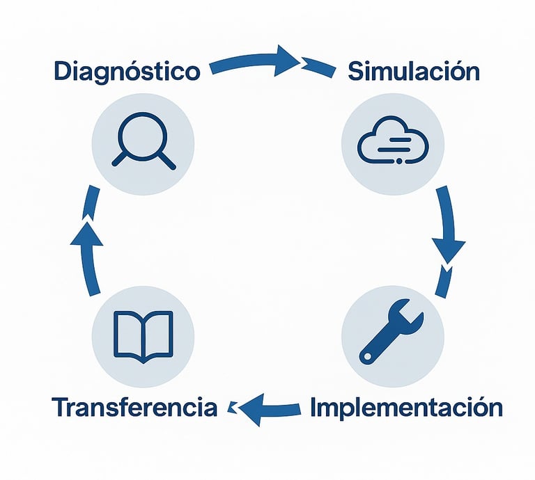 Enfoque por proyecto: intervenimos cuando se necesita especialización en CFD, FEA, analísis estructural, auditorías energéticas y más.